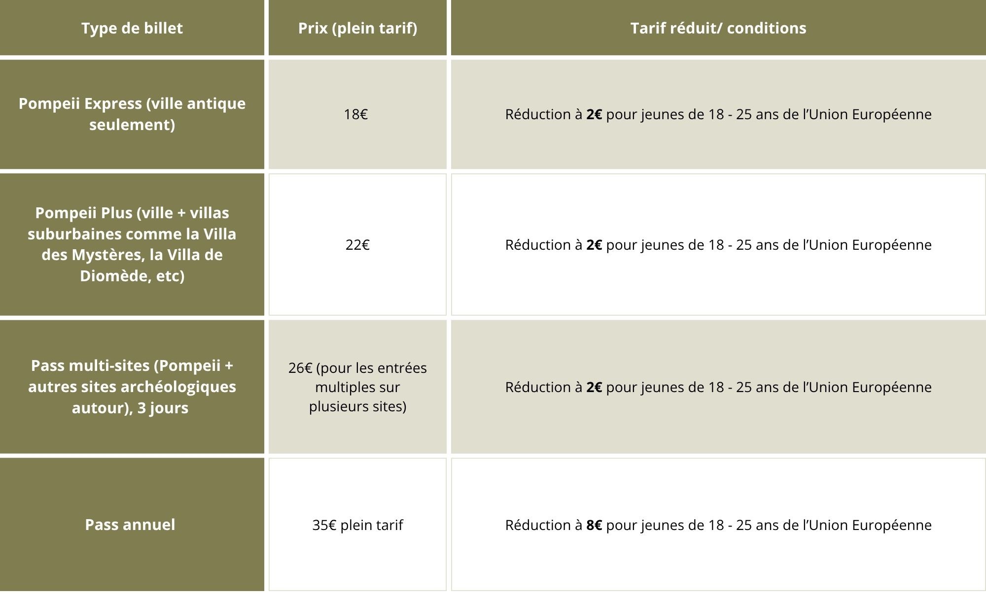 Les tickets officiels peuvent être achetés sur le site officiel de l'Archeological Park of Pompei.