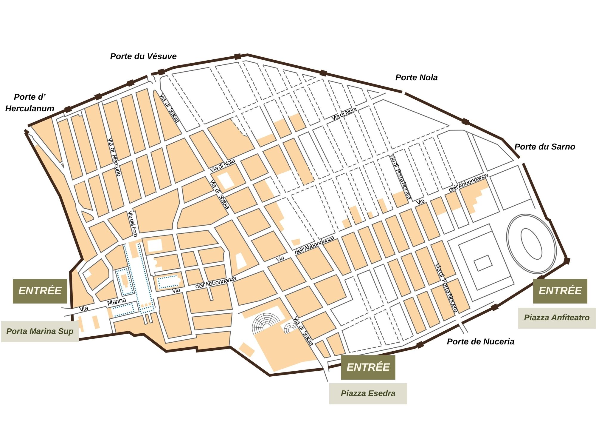 C'est l'entrée la plus à l'est, pratique pour commencer une visite par l'amphithéâtre ou les fresques de la Villa des Mystères.