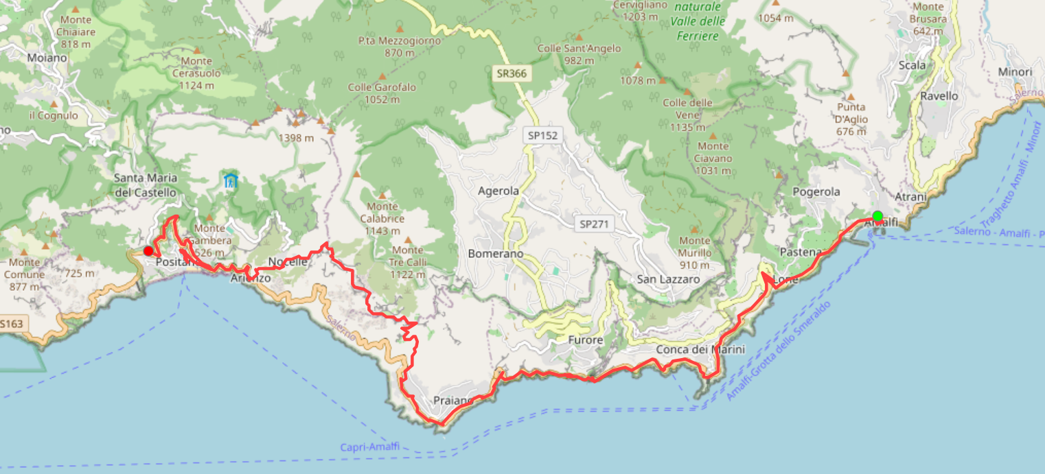 Itinéraire du sentier des Dieux - source Trails Viewer