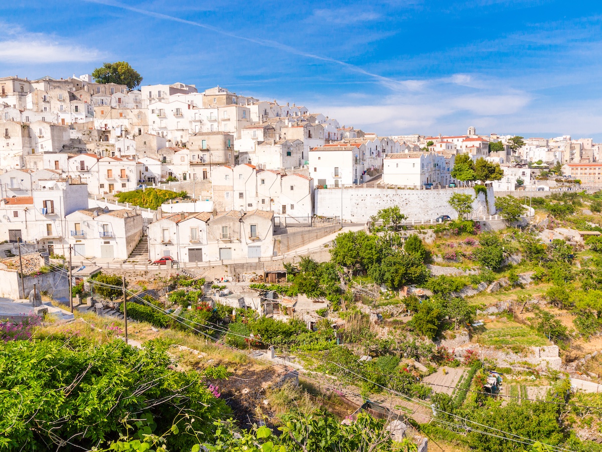 Notre randonnée se termine à Locorotondo, classé parmi les plus beaux villages d’Italie. Ses ruelles blanches, son plan circulaire et le clocher baroque de son église lui confèrent un charme intemporel, typiquement apulien. Transfert en fin de journée à Bari. Dîner libre.