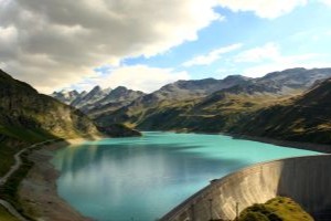 La descente mène au lac et barrage de Moiry, un cadre idéal pour une soirée en refuge.
