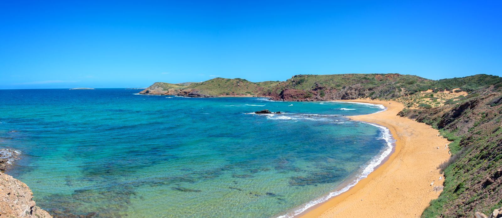 Le sentier se poursuit à travers les oliviers sauvages, les forêts de genévriers et les dunes claires qui annoncent la plage de Cala en Turqueta, l’une des merveilles naturelles de l’île. Tout au long du parcours, vous évoluez dans des zones protégées, alternant falaises rocheuses, ravins et criques secrètes. Avant de rejoindre Son Saura, pause à Cala Talaier. La journée s’achève par un transfert vers l'hôtel à Ciutadella.