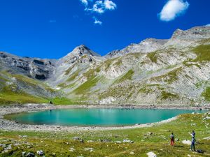 Nous atteignons rapidement le lac du Lauzanier, puis poursuivons vers le lac de Derrière la Croix. Selon l’envie et la forme du groupe, nous pouvons continuer vers un itinéraire plus discret menant aux lacs des Hommes, souvent fréquentés par les chamois.