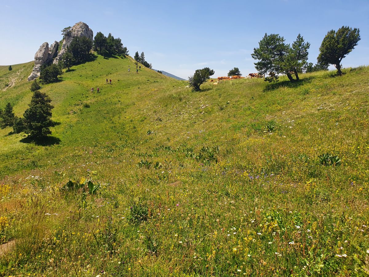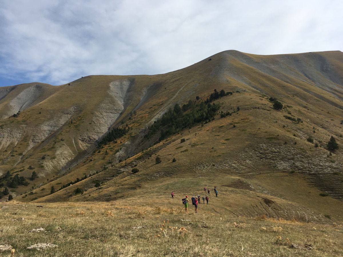 La traversée du plateau, au décor presque minéral, offre une ambiance particulière. Depuis le sommet, la vue s’ouvre largement sur le Dévoluy et les Alpes du Sud.