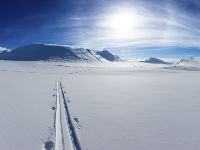 Située à l'extrême nord du pays, au-dessus des vastes étendues sauvages du Sarek, l'un des plus grands parcs naturels d'Europe, la Piste Royale porte bien son nom. L'itinéraire traverse de longues vallées glaciaires dominées par le Kebnekaise (2127 m), point culminant de la Suède, et par une succession de sommets enneigés, forêts boréales et plateaux ouverts où évoluent rennes, lagopèdes et élans.